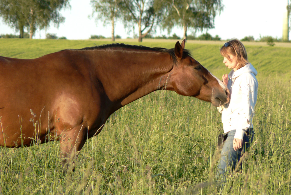 In einem Seminar sollte eine Teilnehmerin mit dem Pferd einen kleinen Parcours gehen. Sie machte alles richtig – führte das Pferd ruhig und freundlich. Doch plötzlich blieb das Pferd einfach stehen. Nichts half – kein Zureden, kein leichtes Ziehen am Strick. Ich fragte sie: „Was würdest du eigentlich gerade lieber tun?“ Und sie sagte: „Ehrlich gesagt, ich würde gerade viel lieber einfach hier stehenbleiben und mit dem Pferd kuscheln. Ich habe gar keine Lust zu laufen.“